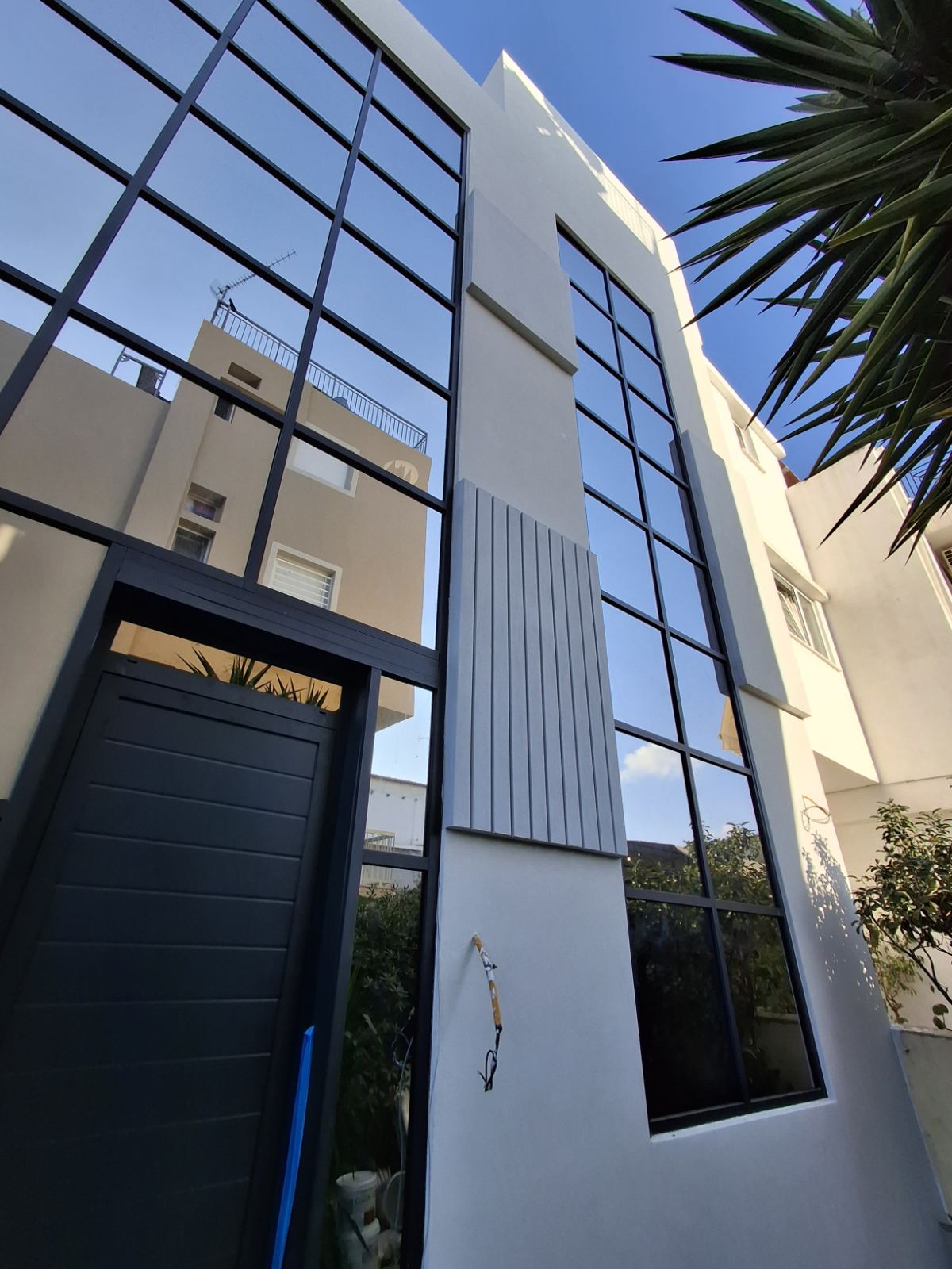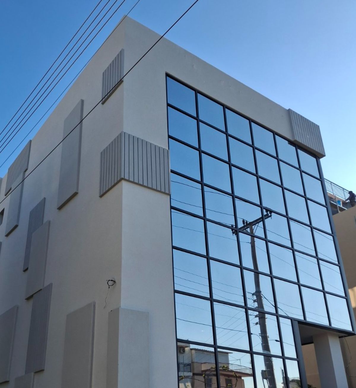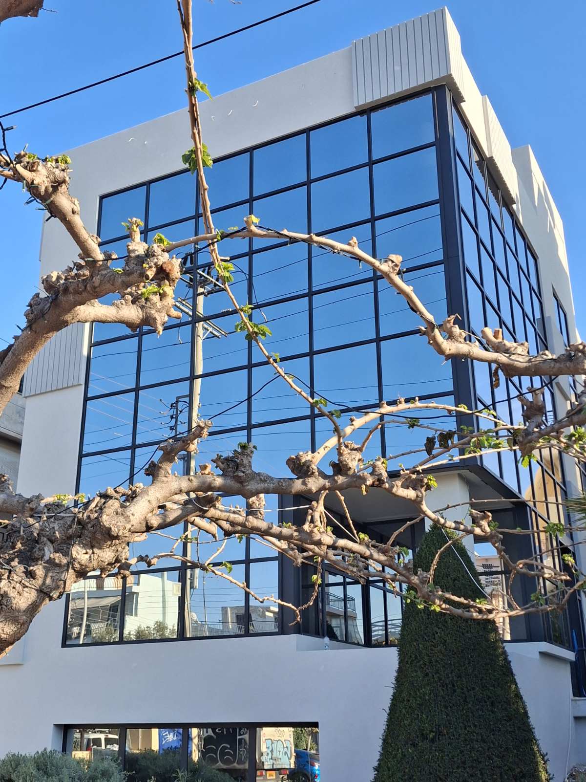 Στο κτίριο γραφείων στην Αργυρούπολη, έγινε ενεργειακή αναβάθμιση με το σύστημα LAKMA THERM ST, με γραφιτούχα πολυστερίνη. Για αρχιτεκτονικούς λόγους έγιναν εκ νέου προεξοχές με μονωτικό υλικό. Σε κάποιες τοποθετήθηκαν σκοτίες PVC και σε άλλες γραμμικός κατακόρυφος φωτισμός.
